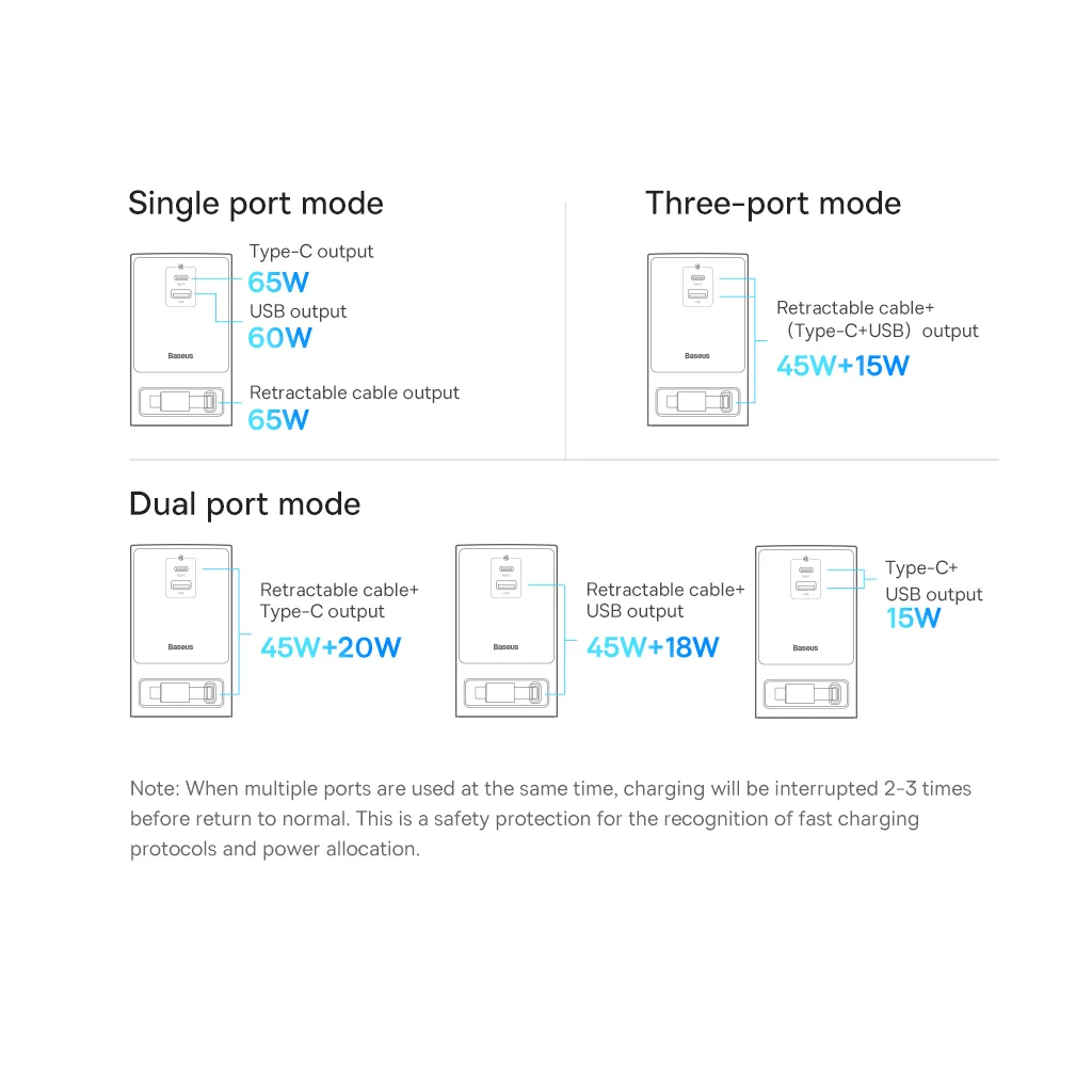 - Vysoký výkon: S výkonem 65W umožňuje rychlé nabíjení i náročnějších zařízení, jako jsou notebooky.