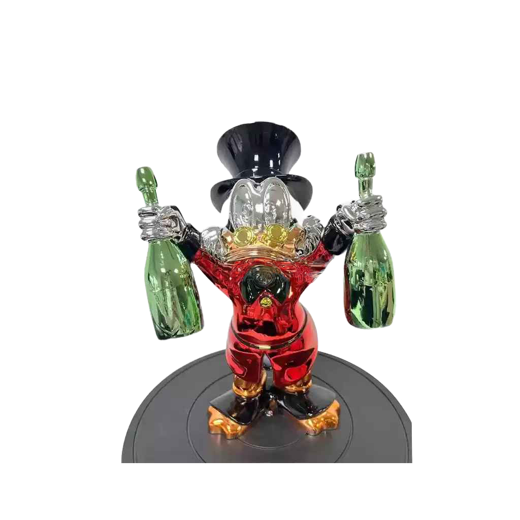 Tato extravagantní dekorativní soška ze sklolaminátu zachycuje radost a opulentní styl, s ikonickou postavou v lesklém provedení držící lahve šampaňského. Je to výrazný prvek, který dodá modernímu interiéru punc originality a hravého luxusu.