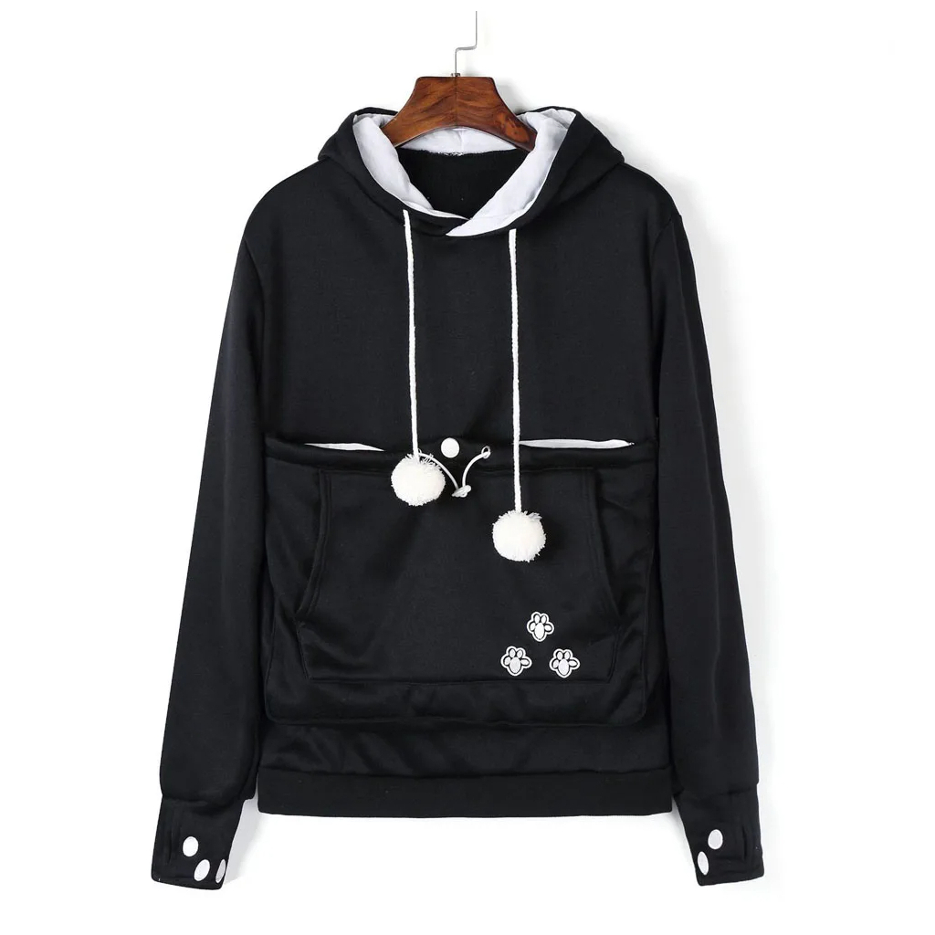 Teplá mikina s klokaní kapsou pro kočku či pejska - ČERNÁ