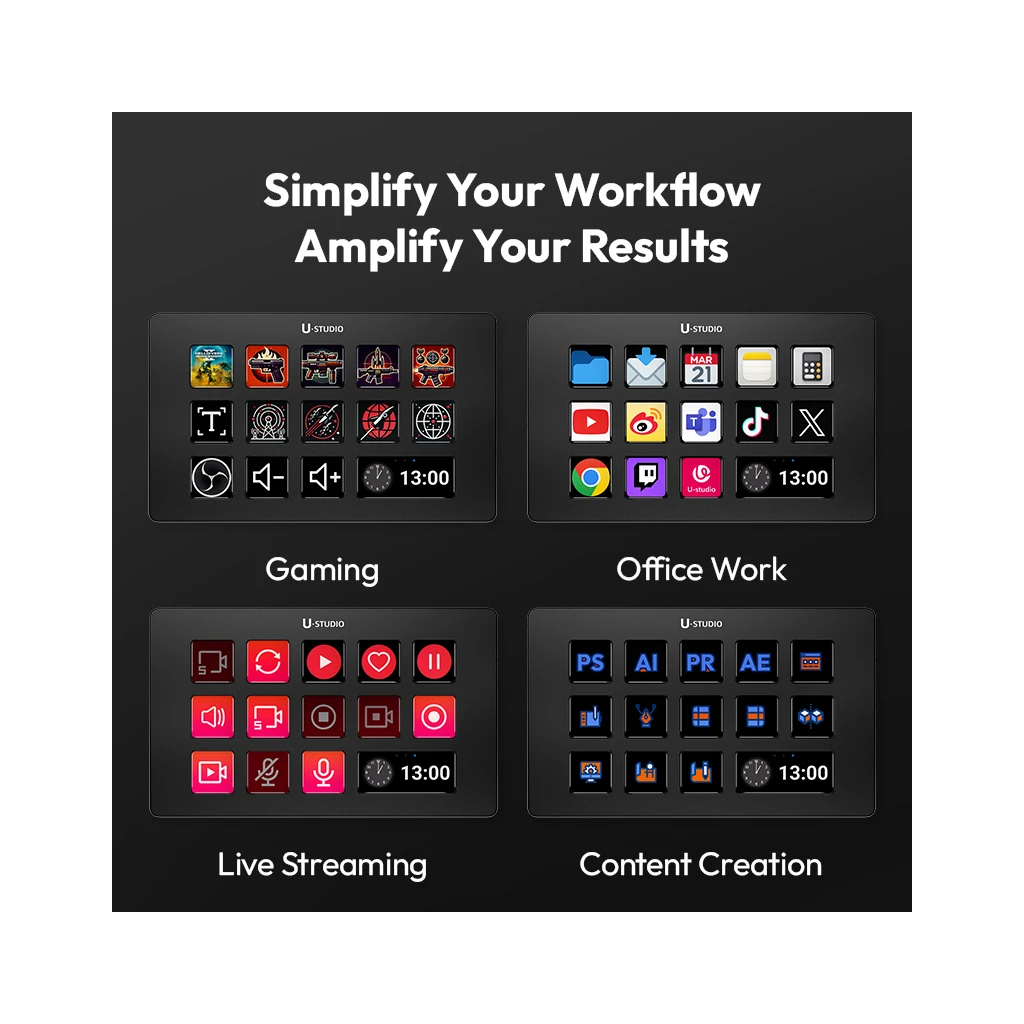 Ulanzi D200 Stream Deck je multifunkční zařízení, které výrazně zjednodušuje ovládání při živém streamování, tvorbě obsahu a dalších činnostech. Zde je podrobný popis jeho vlastností a funkcí: