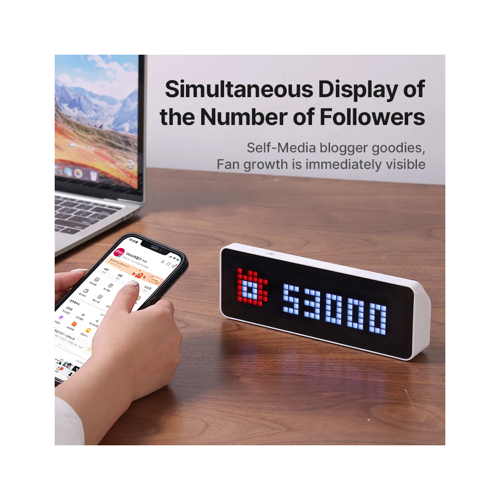 Ulanzi TC001 Smart Pixel LED Clock je multifunkční chytrý pixelový LED displej, který kombinuje retro design s moderními technologiemi. Můžete jej používat jako hodiny, budík, zobrazovač počasí, počítadlo sledujících na sociálních sítích nebo jako platformu pro zobrazení vlastních pixelových animací.